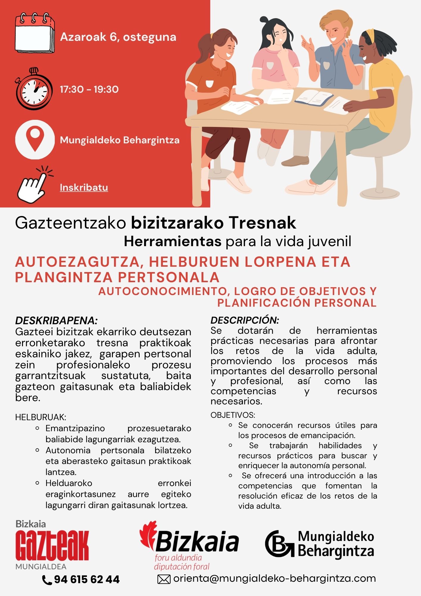 Primera sesión dirigida al colectivo de jóvenes, 6 NOVIEMBRE a las 17:30 en Mungialdeko Behargintza.