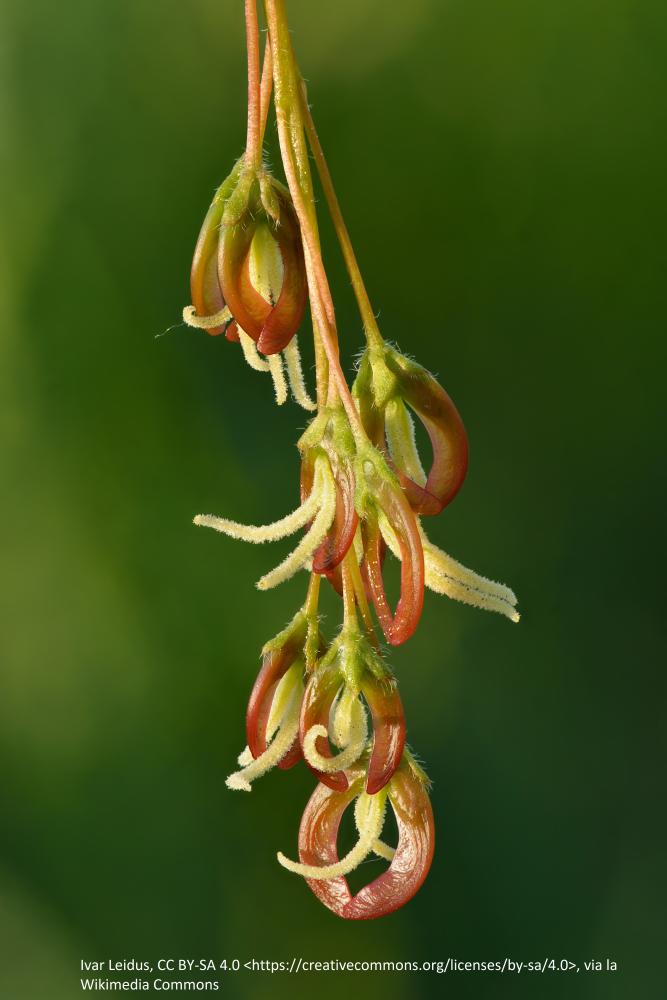 Es un árbol dioico, es decir, los ejemplares femeninos y masculinos se encuentran en pies separados. Florecen en primavera antes de que las hojas hayan brotado y quizá te cueste distinguir unos de otros por el tipo de flor, ya que al igual que en otras especies, las flores que poliniza el viento suelen carecer de pétalos. Saldrás de dudas cuando veas los frutos: dos semillas pegadas con dos alas que forman una v invertida. Una disámara típica de todos los arces, pero que en esta especie se encuentra en un ángulo de unos 60º. Compárala con la del arce campestre que encontrarás también en este parque.