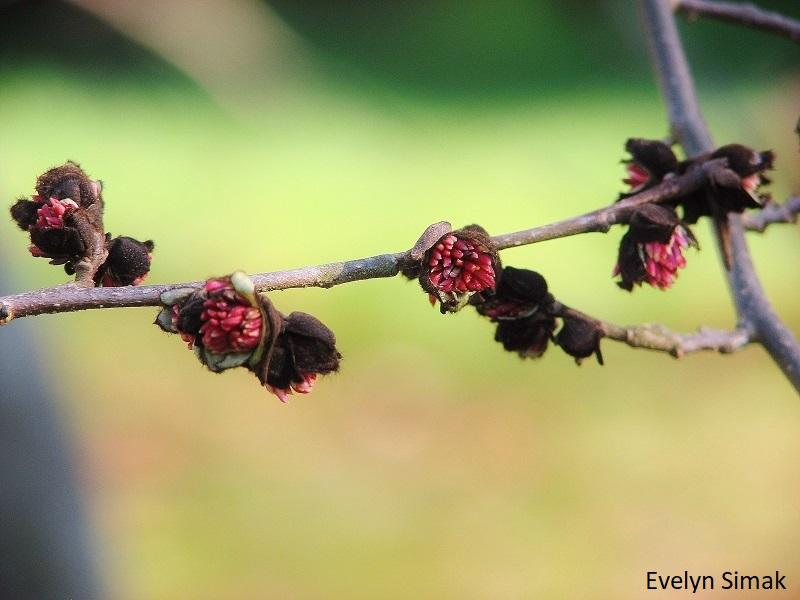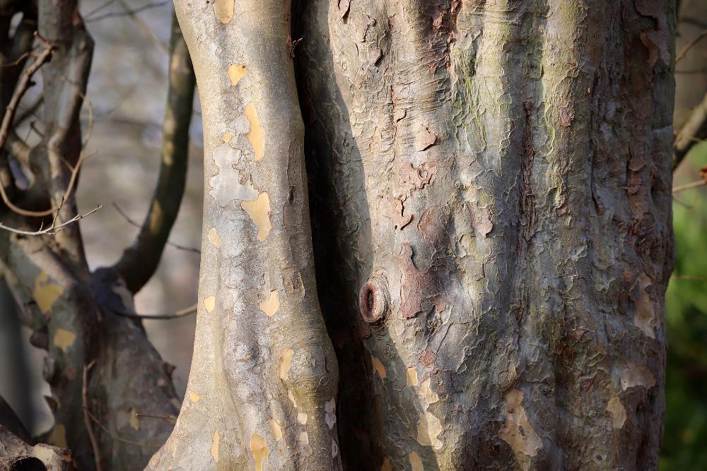 Estéticamente es un árbol muy deseable en jardines como este, sobre todo por los colores naranjas que adquieren su hojas en otoño y su corteza descamada, que en cierta medida recuerda a la del plátano de sombra. A finales del invierno lo verás florecer, unas flores muy particulares, sin pétalos que saldrán de las ramas desnudas todavía y con un mechón de estambres rojos. La dureza de su madera propició el otro nombre por el que también se conoce, el árbol de hierro.