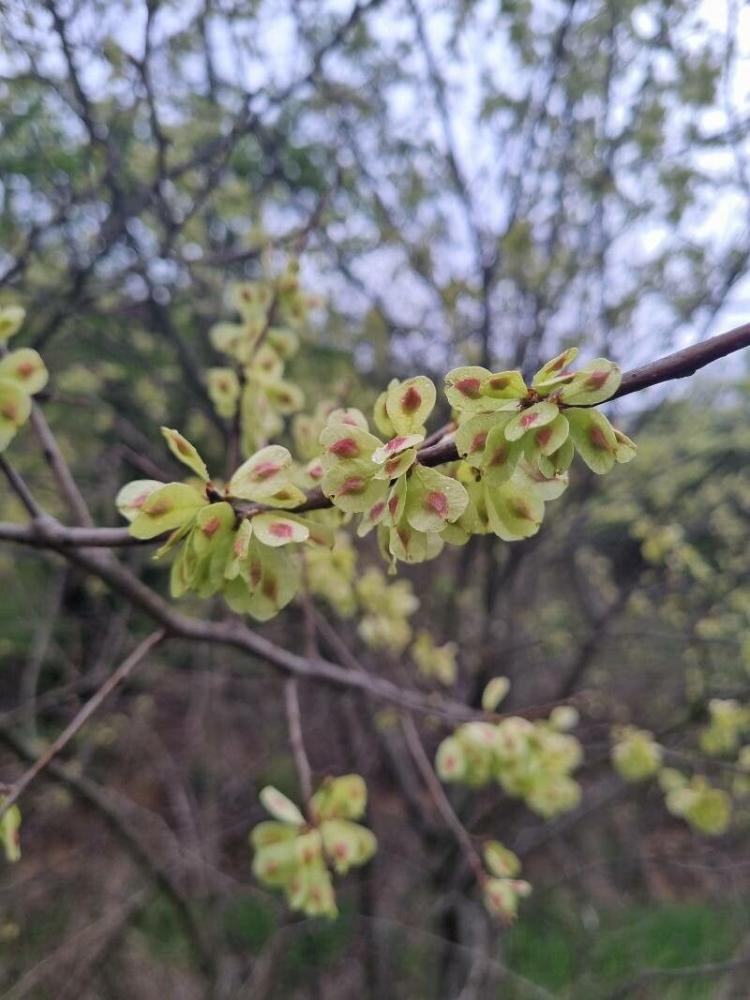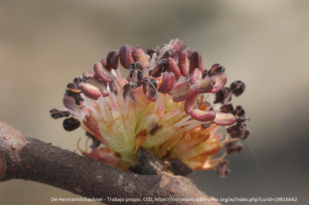 No produce flores vistosas, pero sin embargo las semillas rodeadas de una especie de membrana que dispersará el viento, son llamativas. En botánica se denominan sámaras, como en los arces, pero a diferencia de estos, en los olmos una sola semilla en cada fruto parece más un huevo frito, que las dos semillas pegadas en los arces, que recuerdan a las hélices de un helicóptero.