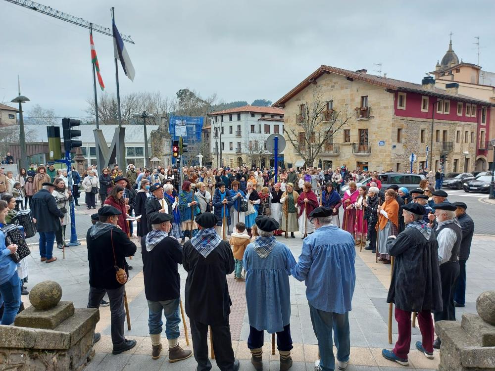 Udaletxearen aurrean eta herrian zehar
